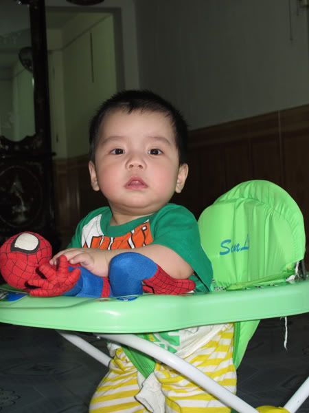 Chỉ thích ngồi xe tròn tập đi, lượn khắp xó xỉnh trong nhà.
