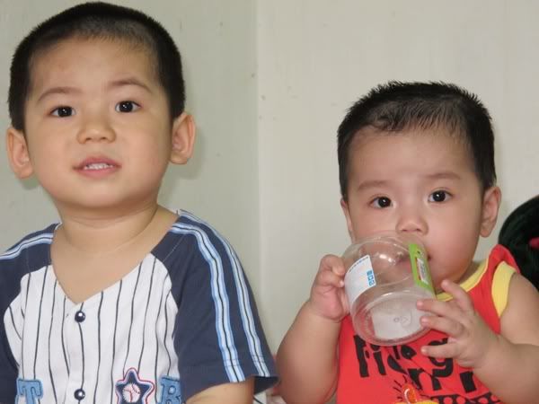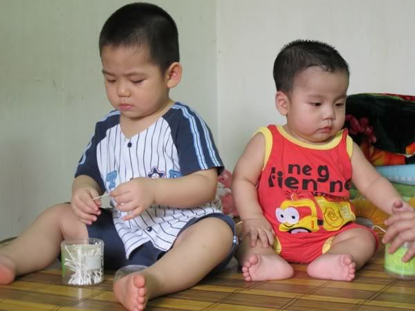 Mình ra dáng anh cả chưa, hehe thế mà lúc mẹ bảo trông em cho mẹ thì mặt mình xị ra: